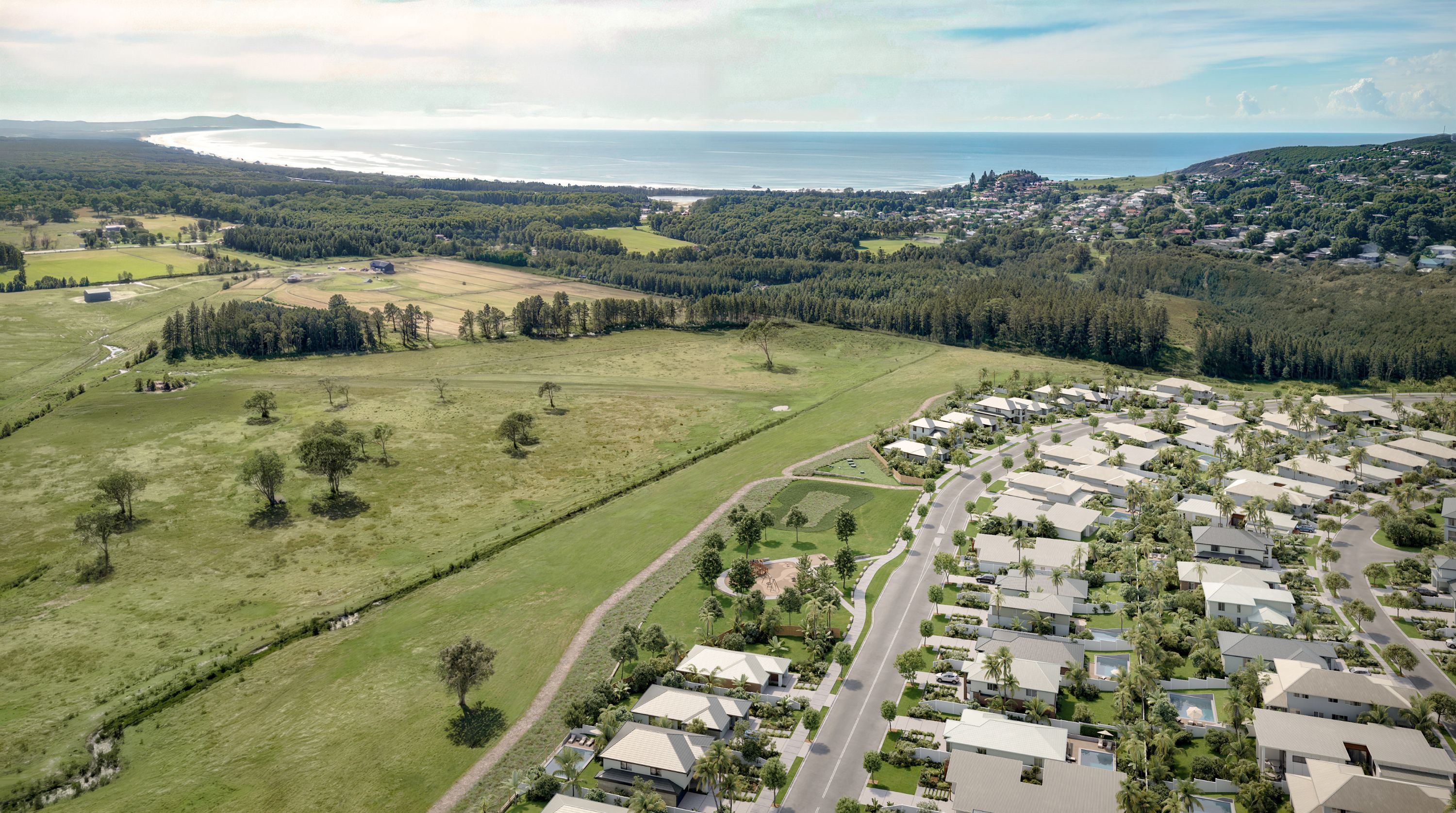 The town’s last ever land release positioned on the edge of town, the estate captures sweeping rural and mountain outlooks along with stunning sunrises and sunsets, all just a 900 metre walk to the beach. More affordable than other coastal hot-spots and better value than a local knockdown, The Crescent is open and ready for its first homes with civil works now complete.